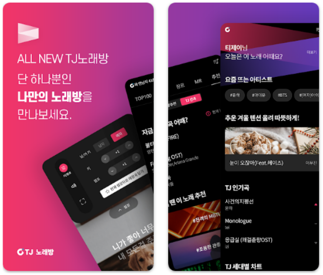 이 앱은 TJ노래방 기기의 기술력을 모바일에 담아, 언제 어디서나 전문적인 노래방 경험을 제공하고 있습니다. 최신곡을 빠르게 업데이트하며, 남녀 키 조절, 에코 효과 등 세밀한 기능도 지원합니다.