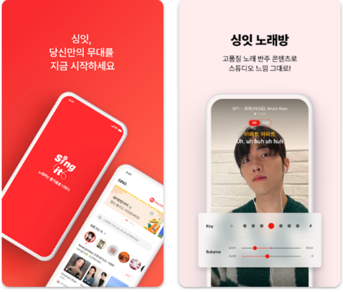 싱잇은 고음질 MR 반주와 최신 디지털 사운드 기술을 적용한 소셜형 영상 노래방 앱입니다. 사용자는 자신만의 노래 영상을 녹음, 편집해 공유할 수 있으며, 전 세계 유저와 듀엣을 하거나 글로벌 오디션에 참여할 수 있습니다.
